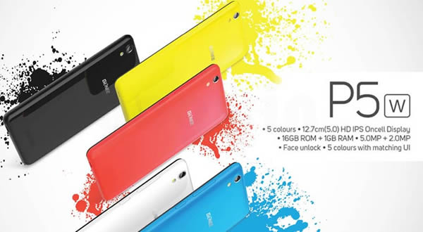 Gionee ผู้ผลิตสมาร์ทโฟนแบรนด์จีนพร้อมวางจำหน่าย P5W สมาร์ทโฟนรุ่นประหยัดงบรุ่นล่าสุดที่อินเดีย โดยมาพร้อมกับตัวเครื่องสีสันต่างๆ มากมาย ได้แก่ สีขาว สีดำ สีฟ้า สีแดง และสีเหลือง มีราคาเปิดตัว 6499 รูปี (ประมาณ 3,410 บาท)