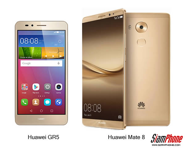 Huawei เปิดตัว 3 รุ่นใหม่ Huawei Mate 8 สมาร์ทโฟนดีไซน์แบบยูนิบอดี้วัสดุอลูมิเนียม ขนาดหน้าจอ 6 นิ้ว ความละเอียด FullHD ด้านหลังมีเซ็นเซอร์สแกนลายนิ้วมือ ขับเคลื่อนบนหน่วยประมวลผล Kirin 950 (64-bit) Octa-core รันระบบปฏิบัติการ Android 6.0 (Marshmallow) กล้องถ่ายรูป ความละเอียด 16 ล้านพิกเซล ราคาวางจำหน่าย 23,990 บาท Huawei GR5 สมาร์ทโฟนจอ 5.5 นิ้ว FullHDมาพร้อมเซ็นเซอร์สแกนลายนิ้วมือ แบตเตอรี่ขนาด 3000 mAh วางจำหน่ายราคา 8,990 บาท และอีกหนึ่งรุ่น Mediapad M2 10.0 แท็บเล็ตขนาดหน้าจอใหญ่ 10 นิ้ว มาพร้อมปากกา Stylus