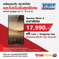 ถ้าหากใครกำลังมองหาสมาร์ทโฟนเรือธงรุ่นใหม่สักรุ่น แต่ยังคิดไม่ออกว่ารุ่นไหนดี โดยในวันนี้จึงขอนำโปรโมชั่นใหม่มาบอก ซึ่งเป็นข้อเสนอจาก TrueMove H กับรุ่น Huawei Mate 8 ที่ลดราคาเครื่องเหลือเพียง 17,990 บาท จากเดิม 23,990 บาท ในงาน Thailand Mobile Expo 2016 โดยผู้ที่สนใจต้องเปิดเบอร์ใหม่พร้อมชำระค่าบริการล่างหน้า 4,000 บาท (ระยะเวลาสัญญา 12 เดือน) ซึ่งสามารถสอบถามรายละเอียดเพิ่มเติมได้ที่บูททรูมูฟเฮช ส่วนรายละเอียดของสเปกมีดังต่อไปนี้...?