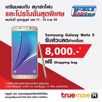สำหรับ Samsung Galaxy Note 5 เป็นอีกหนึ่งรุ่นที่ผู้ให้บริการเครือข่ายสัญญาณ TrueMove H ที่ได้นำมาลดราคาค่าเครื่องถึง 8,000 บาท โดยเงื่อนไขเบื้องต้นก็คือต้องเปิดเบอร์ใหม่พร้อมชำระค่าบริการล่วงหน้า 4,000 บาท (ระยะเวลาสัญญา 12 เดือน) ทำให้ ณ ตอนนี้ในบูทของทรูมูฟเฮชมีสมาร์ทโฟนสองรุ่นที่น่าสนใจมาลดราคา Note 5 & Mate 8 และก็ส่วนรายละเอียดเพิ่มเติมสามารถอ่านได้จากรีวิวที่ Siamphone.com