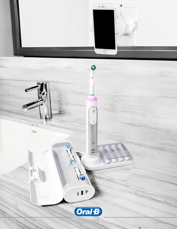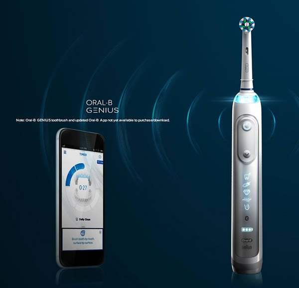 แปรงสีฟันไฮเทค Oral-B Genius จะต่างจากแปรงสีฟันไฟฟ้าทั่วไปตรงที่สามารถรับรู้แรงกดของหัวแปรงที่กระทบฟันแต่ละซี่ พร้อมกับให้คำแนะนำท่าทางการแปรงฟันที่ถูกวิธีและครอบคลุมพื้นที่ช่องปากผ่านหน้าจอสมาร์ทโฟน สามารถนำเสนอกราฟสรุปข้อมูลการแปรงฟันในรูปแบบแอพพลิเคชั่น ผู้ใช้งานเพียงแค่ตั้งสมาร์ทโฟนไว้บนหน้ากระจก เปิดแอพพลิเคชั่นขณะที่แปรงฟัน เซ็นเซอร์วัดแรงดันภายใน Oral-B Genius จะช่วยปรับแรงดันหัวแปรงอัตโนมัติในกรณีที่ผู้ใช้งานออกแรงมากหรือน้อยเกินไปจนอาจเกิดอันตรายต่อช่องปากและฟันแต่ละซี่