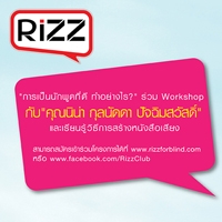 Rizz จึงสานต่อโครงการ ด้วยการจัดอบรมในหัวข้อ “การเป็นนักพูดที่ดี ทำอย่างไร?” ร่วม Workshop กับพิธีกรและผู้ประกาศข่าว ชื่อดัง คุณนิน่า กุลนัดดา ปัจฉิมสวัสดิ์ ที่จะมาถ่ายทอดความรู้และ เทคนิคการเป็นนักพูดที่ดี อาทิ วิธีการออกเสียงที่ถูกต้อง, วิธีพูดให้น่าฟัง และวิธีแก้สถานการณ์เมื่อพูดผิด เป็นต้น พร้อมร่วมเรียนรู้ขั้นตอนการทำหนังสือเสียงให้กับผู้พิการทางสายตา ผ่านโปรแกรม Obi โดยมีเป้าหมายเพื่อเพิ่มจำนวน ผู้มีความรู้ความสามารถในการสร้างหนังสือเสียง ให้กับห้องสมุดคนตาบอด เนื่องจากปัจจุบันยังขาดแคลนและไม่เพียงพอต่อความต้องการ