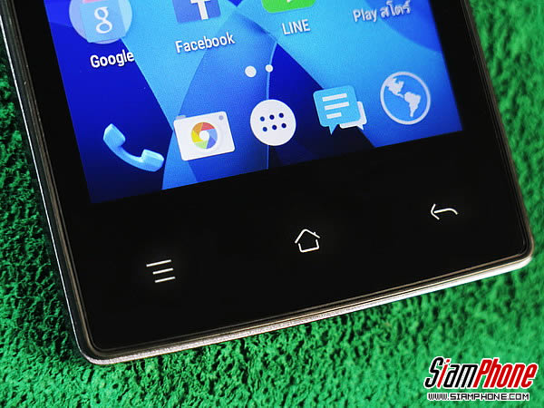 ตรงกลางคือปุ่ม Home สำหรับกลับเข้าสู่หน้าหลัก หรือกดค้างเพื่อเรียกใช้งาน Google App และขวาสุดคือปุ่มย้อนกลับ