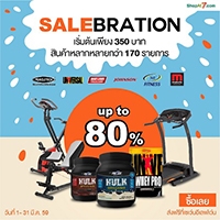 Shopat7.com จัดโปรฯสุดคุ้ม Salebration สินค้าหลากหลายจากแบรนด์ชั้นนำกว่า 170 รายการ ราคาเริ่มต้นเพียง 350 บาท เช่น 360 Fitness เบาะซิทอัพ พับได้ พร้อมของแถม ราคาปกติ 6,990 บาท ราคาพิเศษเพียง 1,350 บาท ชุดอุปกรณ์ออกกำลังกายโยคะ 5 ชิ้น ราคาปกติ 1,990 บาท ราคาพิเศษเพียง 977 บาท Universal Ultra Whey Pro Cookies & Cream 5 lb ราคาปกติ 3,050 บาท ราคาพิเศษเพียง 2,190 บาทา และสินค้าอื่นๆ ลดจัดหนักทุกรายการ เนรมิตหุ่นฟิตเฟิร์มได้ง่ายๆที่บ้านคุณ ด่วน วันนี้ ถึง 31 มีนาคม 2559 นี้เท่านั้น