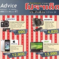 แอดไวซ์ (Advice) แหล่งรวมสินค้าไอที และสมาร์ทโฟนรายใหญ่ ที่มีเครือข่ายครอบคลุมกว่า 350 สาขาทั่วประเทศไทย จัดโปรโมชั่นพิเศษตลอดเดือนมีนาคม 2559 เอาใจลูกค้าคอไอที ด้วยสินค้าเด็ด 6 รายการดังต่อไปนี้
