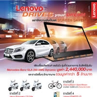เลอโนโว ผู้นำยอดขายคอมพิวเตอร์อันดับ 1 เปิดตัวแคมเปญสุดพรีเมี่ยม ภายใต้ชื่อ “Lenovo Drives Your Dream” ด้วยแนวคิด อย่าให้ความฝันเป็นแค่ screen saver ซึ่งในครั้งนี้ เลอโนโว เตรียมกองทัพของรางวัลระดับไฮเอนด์มาอย่างคับคั่ง นำทัพโดย รถยนต์เมอร์เซเดส-เบนซ์ GLA 250 AMG Dynamic มูลค่า 2,440,000 บาท และ รถจักรยานยนต์ Vespa Primavera 125 3Vie มูลค่า 95,400 บาท จำนวนถึง 9 รางวัล และรางวัลอื่นๆอีกมากมายรวม 210 รางวัล รวมมูลค่ากว่า 5 ล้านบาท โดยสามารถร่วมสนุกได้ตั้งแต่ วันนี้ – 10 เมษายน 2559