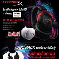 *เงื่อนไข DUO PACK เมื่อซื้อ HyperX รุ่นใดก็ได้จำนวนเริ่มตั้งแต่ 2 ตัวเป็นไปในบิลเดียวกันรับสิทธิ์รับโปรโมชั่นเพิ่มเติมในแพคนี้ตามจำนวน 1 ชิ้น ต่อหูฟัง 1 ตัว