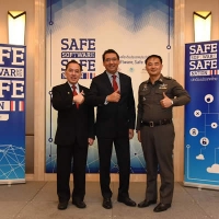 นายทศพล ทังสุบุตร รองอธิบดีกรมทรัพย์สินทางปัญญา กระทรวงพาณิชย์ (กลาง) พ.อ.ต.กิตติศักดิ์ ปลาทอง รองผู้บังคับการ กองบังคับการปราบปรามการกระทำความผิดเกี่ยวกับอาชญากรรมทางเศรษฐกิจ สำนักงานตำรวจแห่งชาติ (ซ้าย) และนายสมพร มณีรัตนะกูล นายกสมาคมอุตสาหกรรมซอฟต์แวร์ไทย (ขวา) ร่วมเปิดตัวโครงการ ‘Safe Software, Safe Nation’ เร่งลดการละเมิดลิขสิทธิ์ซอฟต์แวร์ต้นตอภัยไซเบอร์ ซึ่งเป็นโครงการระดับประเทศที่จัดทำขึ้นเพื่อลดการใช้ซอฟต์แวร์ผิดกฎหมายและไม่มีสัญญาอนุญาตให้ใช้สิทธิ ควบคู่ไปกับการป้องกันภัยและลดความเสี่ยงบนโลกไซเบอร์