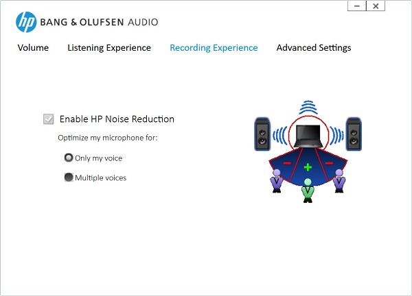 HP Elite x2 1012 ได้ติดตั้งลำโพงแบบสเตอริโอพร้อมระบบเสียงจากแบรนด์ผู้ผลิตเครื่องเสียงชั้นนำอย่าง Bang & Olufsen ทำให้มั่นใจได้ถึงพลังเสียงที่คมชัดสมจริง นอกจากนี้ยังสามารถเลือกปรับแต่งเสียงได้ตามรูปแบบการใช้งานได้ผ่านโปรแกรม Bang & Olufsen Audio