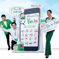 ธนาคารกสิกรไทย ออกสติ๊กเกอร์ไลน์ดุ๊กดิ๊กได้ ชุดใหม่ “Fin for Fun” สติ๊กเกอร์การเงินสุดมันส์ ให้การแชทของทุกคนสนุก ป่วน ฮา และน่ารัก ไปกับคาแรคเตอร์ 2 หนุ่มที่มาพร้อมกับ “K-Expert” เพื่อนช่วยคิดสุดคูล และ “เต๋า” มนุษย์งานจอมอ้วนสุดน่ารัก ที่มาพร้อมกับคำพูดทางการเงินโดนๆ ไม่ซ้ำใคร เปิดให้ดาวน์โหลดฟรีตั้งแต่วันนี้ – 20 เมษายน 2559 พร้อมเพิ่มฟีเจอร์ใหม่ บริการ “แชท” ให้บริการสอบถามข้อมูลผ่านมือถือได้ทุกที่ ทุกเวลา ตลอด 24 ชม. ตอบโจทย์ไลฟสไตล์คนรุ่นใหม่
