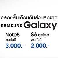 สำหรับสมาร์ทโฟนรุ่น Galaxy Note 5 จะลดราคาลง 3,000 บาท (เหลือ 22,900 จากเดิม 25,900 บาท) ส่วน Galaxy S6 edge ลดไปอีก 2,000 บาท เหลือราคา 21,900 บาทของเดิมอยู่ที่ 23,900 บาท โดยทั้งคู่เป็นรุ่น 32GB อย่างไรก็ตาม ทางซัมซุงบอกว่าเฉพาะร้านค้าที่ร่วมรายการโปรโมชั่นดังกล่าวเท่านั้น ขณะที่ระยะเวลาโปรโมชั่นหมดเขตวันที่ 3 เมษายน พ.ศ. 2559
