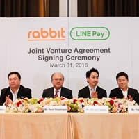 Rabbit และ LINE Pay ประกาศลงนามเซ็นสัญญาร่วมลงทุนครั้งยิ่งใหญ่ระหว่าง Rabbit ระบบบัตรสมาร์ทการ์ดแรกที่สามารถใช้ได้กับเครือข่ายระบบขนส่งมวลชน รวมถึงสินค้าและบริการจากพันธมิตรต่างๆ กับ LINE Pay แพลตฟอร์มการชำระเงินผ่านมือถือจาก LINE ภายใต้ชื่อบริษัทตามกฎหมาย “LINE Biz Plus Limited” ทั้งนี้ Rabbit ภายใต้ชื่อบริษัท BSS Holdings Co.,Ltd. จะทำการเพิ่มทุนให้กับ LINE Biz Plus Limited เป็นจำนวน 50% โดยบริการ LINE Pay จะเปลี่ยนชื่อเป็น “Rabbit LINE Pay” ถือเป็นการผสานแพลตฟอร์มการชำระเงินแบบออนไลน์ และออฟไลน์รายใหญ่เป็นครั้งแรกในประเทศไทย