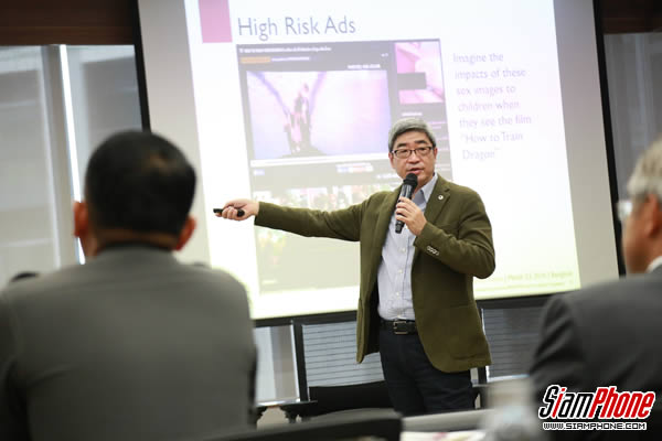 Dr. Michael กล่าวว่า ทุกวันนี้ โฆษณาออนไลน์ปรากฏหลายรูปแบบและซับซ้อนขึ้น โดยแบ่งได้เป็น 2 กลุ่ม คือ โฆษณาสินค้าถูกกฎหมาย (Mainstream ads) และโฆษณาสิ่งที่ผิดกฎหมาย (High-risk ads) เช่น สิ่งลามกอนาจร การพนันออนไลน์ แอนติไวรัสปลอม ฯลฯ ซึ่ง High-risk ads มักแฝงมากับเว็บไซต์ที่ผิดกฎหมาย เช่น เว็บไซต์ดูหนังออนไลน์ (Movie Streaming) หรือเว็บไซต์ที่มีเนื้อหาละเมิดลิขสิทธิ์ ซึ่งหากเด็กและเยาวชนไปคลิกดูโฆษณาที่แฝงมาก็อาจส่งผลกระทบร้ายแรงได้ โดยจากการสังเกตโฆษณาบนเว็บไซต์ที่ผิดกฎหมายในประเทศไทย พบว่ามีโฆษณาแบบ Mainstream เพียง 6% ที่เหลือเป็นพวก High-risk โดยกว่า 60% มีเนื้อหาลามก และกว่า 10% เป็นการพนันออนไลน์ ในต่างประเทศ แนวทางหนึ่งในการแก้ไขคือ ใช้ความร่วมมือ อย่างในสหรัฐอเมริกา เรียกว่า ‘TAG’ เป็นความร่วมมือระหว่างภาคเอกชนด้วยกันเอง มีการรวมเว็บไซต์ที่ผิดกฎหมาย ซึ่งผู้ประกอบการสามารถเข้าไปดูรายชื่อได้ ส่วนในสหราชอาณาจักร เรียกว่า ‘Operation Creative’ และ ‘IWL’ (Infringing Website List) ซึ่งเป็นความร่วมมือระหว่างภาครัฐ ได้แก่ ผู้บังคับใช้กฎหมาย กับผู้ประกอบการ โดยใช้การตัดรายได้ของเว็บไซต์ที่ผิดกฎหมาย