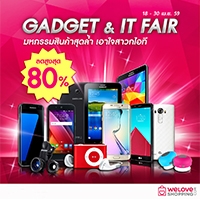Gadget & IT Fair มหกรรมสุดล้ำ ที่ให้สาวกไอทีเป็นเจ้าของ Galaxy S7 Edge รุ่นล่าสุดได้ในราคาพิเศษ หรือเลือกช้อปสินค้าไอทีสุดฮอตไม่ว่าจะเป็นสมาร์ทโฟนและแท็บเล็ตจาก Samsung LG i-Mobile และ Asus ที่มาพร้อมราคาสุดพิเศษ รวมไปถึงสินค้าไอทีที่กำลังได้รับความนิยมทั้งนาฬิกาอัจฉริยะ Smart Watch ลำโพงบลูทูธ หูฟังบลูทูธ และอีกหลากหลายไอเทมพร้อมส่วนลดสูงสุดถึง 80% ที่ http://bit.ly/23KKpHU ตั้งแต่วันนี้ถึง 30 เมษายน 2559 นี้เท่านั้น