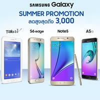 Advertorial : แม้ว่าอากาศจะร้อนเท่าไหร่ ก็ไม่เทียบเท่าโปรโมชั่นร้อนแรงที่ทางซัมซุงส่งมาให้กับผู้ที่สนใจสมาร์ทโฟนและแท็บเล็ตหลากหลายรุ่น แลกรับส่วนลดค่าเครื่องได้สูงสุดถึง 3,000 บาท อาทิ Samsung Galaxy J7 รับส่วนลดทันที 800 บาท เหลือเพียง 8,100 บาท, Samsung Galaxy Tab 3 V ลดทันที 500 บาท เหลือ 4,490 บาท, Samsung Galaxy Note 5 รับส่วนลดทันที 3,000 บาท และรุ่นอื่นๆ อีกมากมาย