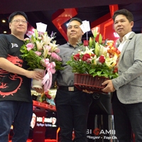 นายวีรฤทธิ์ สมบูรณ์ทรัพย์ ผู้จัดการทั่วไป พันธุ์ทิพย์ ประตูน้ำ ร่วมแสดงความยินดีกับ นายสมยศ เชาวลิต กรรมการผู้จัดการ บริษัท เจ.ไอ.บี.คอมพิวเตอร์ กรุ๊ป จำกัด ผู้บริหารธุรกิจค้าปลีกด้านผลิตภัณฑ์ไอทีระดับแนวหน้าของไทย และ มร. แอนดี้ เชียง ผู้จัดการ MIS ประจำประเทศไทย (MSI Thailand Country Manager) ในโอกาสเปิดชอป MSI by J.I.B. สาขาแรกอย่างเป็นทางการ ที่ชั้น 3 พันธุ์ทิพย์ ประตูน้ำ
