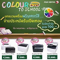 ฟูจิ ซีร็อกซ์ พรินเตอร์ ต้อนรับเปิดเทอม จัดโปรโมชั่นพิเศษ “Colour to School” ยกขบวนเครื่องพิมพ์สี ทั้งแบบซิงเกิลและมัลติฟังก์ชั่น คุณภาพพรีเมี่ยม หลากหลายรุ่นมาให้ลูกค้าได้เลือกซื้อในราคาพิเศษ ตั้งแต่วันนี้ – 30 มิถุนายน 59 นี้