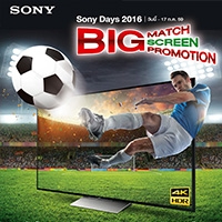 บริษัท โซนี่ ไทย จำกัด จัดแคมเปญยิ่งใหญ่สุดคุ้มทั่วประเทศฉลองฤดูการแข่งขันฟุตบอลระดับโลก Sony Days 2016 – Big Match Big Screen Big Promotion ตั้งแต่วันที่ 16 พฤษภาคม ถึง 17 กรกฎาคม ศกนี้ ด้วยโปรโมชั่นสุดตื่นตาตื่นใจมากมาย ที่ร้านค้าตัวแทนจำหน่ายโซนี่ที่ร่วมรายการทั่วประเทศ