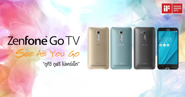 ASUS เปิดตัวพร้อมวางจำหน่าย Zenfone Go TV (ZB551KL) เป็นสมาร์ทโฟนขนาด 5.5 นิ้ว ที่มีความครบครันฟังก์ชันและประสิทธิภาพภายใน ด้วยการออกแบบและฝาหลัง hair line ที่มีให้เลือกถึง 3 สี มีความสามารถในการเชื่อมต่อสัญญาณทีวี และรองรับได้ 2 ซิมการ์ดในเครื่องเดียว (คลิกอ่านรายละเอียดข่าวเพิ่มเติม)