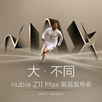 Nubia (แบรนด์ย่อยของ ZTE) เผยภาพทีเซอร์ยืนยันกำหนดการเปิดตัวสมาร์ทโฟน Nubia Z11 Max ที่ศูนย์การแข่งขันกีฬาทางน้ำแห่งชาติ กรุงปักกิ่ง ประเทศจีนในวันที่ 7 มิถุนายนนี้ โดยในภาพทีเซอร์ดังกล่าวมีรูปของนักฟุตบอลชื่อดัง "Cristiano Ronaldo" ซึ่งจะมาเป็นแบรนด์แอมบาสเดอร์ให้กับ Nubia ติดอยู่ด้วย