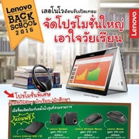 เลอโนโว ผู้นำยอดขายคอมพิวเตอร์อันดับ 1 ต้อนรับเปิดเทอมด้วยโปรโมชั่นสุดพิเศษสำหรับน้องๆนักเรียนและนักศึกษาที่ซือผลิตภัณฑ์เลอโนโว อาทิ แล็ปท็อป, ผลิตภัณฑ์ 2-อิน-1 และแท็บเล็ตที่ร่วมรายการ รับฟรีทันที! ผลิตภัณฑ์เสริมสุดพิเศษ ตั้งแต่วันที่ 1 – 30 มิถุนายน 2559