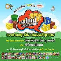 โค้งสุดท้ายสำหรับ “MOL เล่นใหญ่” By AIS แจกทองคำทุกวัน 60 วัน 60 แท่ง โดยเริ่มมาตั้งแต่ 18 เม.ย.ที่ผ่านมา และเพื่อตอกย้ำกระแสความแรงค่ายเกมดังพร้อมใจกันจัด โปรดี ไอเทมโดนมาให้ผู้เล่นเป็นการส่งท้ายรีบหน่อย เพราะจะสิ้นสุดโครงการ 16 มิถุนายนนี้แล้ว