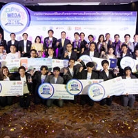 ดร.อุตตม สาวนายน รัฐมนตรีว่าการกระทรวงเทคโนโลยีสารสนเทศและการสื่อสาร พร้อมด้วย นางไอรดา เหลืองวิไล รองผู้อำนวยการสำนักงานรัฐบาลอิเล็กทรอนิกส์ และนางวรรณพร เทพหัสดิน ณ อยุธยา ผู้ตรวจราชการกระทรวงเทคโนโลยีสารสนเทศและการสื่อสาร รวมทั้งหน่วยงานพันธมิตร ร่วมเป็นเกียรติในพิธีประกาศผลและมอบรางวัลในโครงการประกวดผลงานการพัฒนานวัตกรรมโมบายแอปพลิเคชันภาครัฐ ชิงถ้วยพระราชทานสมเด็จพระเทพรัตนราชสุดาฯ ประจำปี 2558 MEGA 2015 : Mobile Enterprise d-Government Award 2015
