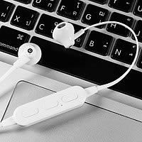 ดังเช่น Rizz SE-102 หูฟังดีไซน์แนวสปอร์ตมาพร้อมสายแบบแบนที่ช่วยทำให้จัดเก็บได้ง่าย และไม่ระคายเคืองเมื่อสวมใส่ พร้อมรองรับการเชื่อมต่อบลูทูธ 4.0 หรือขึ้นไป มีระยะการเชื่อมต่อไม่เกิน 10 เมตรสามารถเล่นเพลงนานสูงสุดประมาณ 4 ชั่วโมง แต่ขึ้นอยู่กับความดังและประเภทเพลง อีกทั้งมีไมโครโฟนที่สามารถเป็น Hands-free เพื่อสนทนา