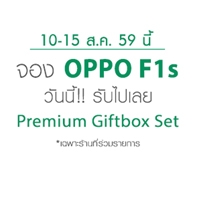 จองได้เลยทันที 10-15 สิงหาคมนี้ รับ Premium Gift box Set ก่อนใคร พร้อมสิทธิพิเศษอีกเพียบ คุ้มค่าเกินราคาแบบนี้ ออปโป้จัดทุกความพิเศษเพื่อคุณ 5 วันเท่านั้น วางจำหน่ายจริงพร้อมกัน 17 สิงหาคม นี้ ทั่วประเทศ ในราคา 9,990 บาท คลิกดูรายละเอียดเพิ่มเติมสำหรับร้านค้าที่ร่วมรายการ ได้เลยที่นี่ ติดตามรายละเอียดเพิ่มเติมของ OPPO F1s ได้ที่ www.facebook.com/oppothai