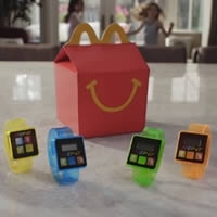 ล่าสุดเพื่อให้สอดคล้องกับกระแสรักสุขภาพและการแข่งขันกีฬาโอลิมปิก 2016 ที่บราซิล McDonald's ก็ได้เปิดตัว "STEP-it" อุปกรณ์สวมข้อมือเพื่อสุขภาพ (fitness tracker) โดยลูกค้าที่ซื้อชุด Happy Meal ในสหรัฐอเมริกาและแคนาดาจะได้รับอุปกรณ์ดังกล่าวเป็นของแถมสำหรับสวมข้อมือ ภายในประกอบด้วยเซ็นเซอร์นับก้าวเดินซึ่งจะกะพริบไฟแสดงสถานะขึ้นมาตามกิจกรรมการออกกำลังกายที่ผู้สวมใส่กำลังทำอยู่