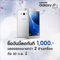 หลังจากที่ Samsung ประเทศไทยนำสมาร์ทโฟน Galaxy J7 เวอร์ชั่น 2 มาวางจำหน่ายในบ้านเราอย่างเป็นทางการเมื่อเดือนพฤษภาคม ปัจจุบันก็เป็นระยะเวลากว่า 4 เดือนแล้ว โดยก็สามารถขายได้กว่าสองล้านเครื่อง เพราะฉะนั้นทางแบรนด์จึงถือโอกาสนี้ ออกโปรโมชั่นพิเศษสำหรับรุ่นดังกล่าว ในราคาลดอีก 1,000 บาท ถึงสิ้นเดือนกันยายนศกนี้ทำให้เหลือราคาเพียง 7,900 บาท