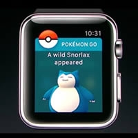 ภายในงานมีการสาธิตตัวอย่างการเล่นเกมส์ Pokemon Go บน Apple Watch ซึ่งฟีเจอร์ต่างๆ ที่มีบนสมาร์ทโฟน อย่างเช่นการแสดงรายชื่อโปเกม่อนที่อยู่ใกล้เคียง การค้นหาโปเกม่อนและหมุนป้าย Pokestop การฟักไข่เมื่อเดินหรือเคลื่อนที่ตามระยะทางที่กำหนดจะมีให้ใช้งานบน Apple Watch แต่การปาลูกบอลจับโปเกม่อนนั้นจะยังคงต้องใช้สมาร์ทโฟนเป็นหลักอยู่ดี (แต่ก็จะได้รับการแจ้งเตือนผ่าน Apple Watch หากมีโปเกม่อนอยู่ในบริเวณใกล้เคียง)