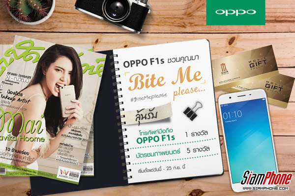 กลับมาอีกครั้ง! กับกิจกรรมสนุกๆที่ OPPO อยากชวนให้คุณได้มาลอง Bitemeplease ปลุกอินเนอร์ในตัวคุณกับท่าโพสที่ไม่ซ้ำใคร พร้อมลุ้นรับ OPPO F1s จำนวน 1 รางวัล และ บัตรชมภาพยนตร์เครือเมเจอร์อีก 5 รางวัล (รางวัลละ 2 ใบ) แบบฟรีๆกันไปเลย!