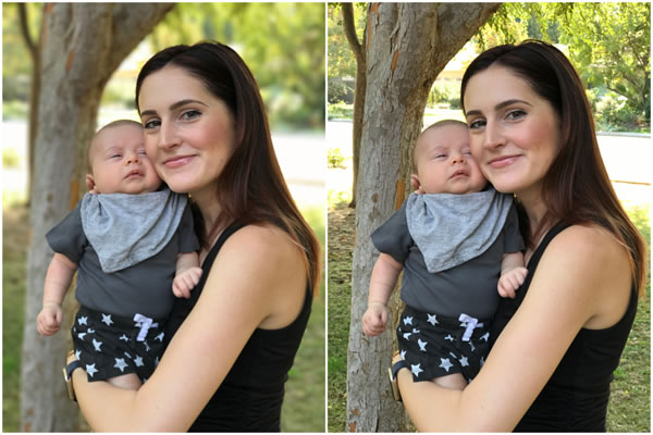 ภาพตัวอย่างของ Apple iPhone 7 Plus โดยฝั่งซ้ายเป็นการถ่ายแบบ Portrait ส่วนฝั่งขวาเป็นภาพถ่ายปกติ