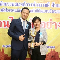 พลตรีหม่อมเจ้าจุลเจิม ยุคล ประธานในพิธีมอบรางวัลโครงการกิจกรรมรณรงค์การทำความดีต้นแบบคนดี ใต้ร่มพระบารมีพ่อของแผ่นดิน คนทำดีต้นแบบสังคมแห่งปี 2559 มอบโล่ “หงส์ทอง” รางวัล "คนไทยตัวอย่าง" แก่ผู้บริหารช่องทรูโฟร์ยู ดิจิตอลทีวี ช่อง 24 นางเนตรชนก วิภาตะศิลปิน กรรมการผู้จัดการ บริษัท ทรูโฟร์ยู สเตชั่น จำกัด ในฐานะผู้ผลิตละครน้ำดีเรื่อง “ส้มตำแฮมเบอร์เกอร์” ซีรีส์เรียกรอยยิ้มและปัญญา ที่ท่าน ว. วชิรเมธี ลงมือเขียนด้วยตนเอง โดยมี วุธ-อัษฎาวุธ เหลืองสุนทร ผู้กำกับและผู้จัดละคร บริษัท ดูมันดี จำกัด