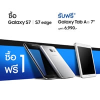 ซื้อผลิตภัณฑ์ Samsung Galaxy S7 หรือ S7 edge รับฟรี Tab A 7” มูลค่า 6,990 บาท ระหว่างวันที่ 26 ก.ย. 59 ถึง 31 ต.ค. 59 ณ Samsung shop ทุกสาขาทั่วประเทศ และร้านค้าที่ร่วมรายการ