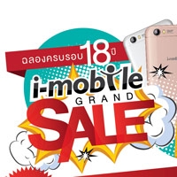 i-mobile ชวนร่วมเฉลิมฉลองกับ i-mobile ในงาน i-mobile Grand Sale 18 ปี ด้วยยอดขาย 38 ล้านเครื่อง ลดสูงสุดถึง 80% สุดพิเศษ!กับโปรโมชั่นผ่อนสบายๆ นาน 18 เดือน ที่ Open Shop by i-mobile ทุกสาขา ตั้งแต่วันที่ 29 กันยายน – 2 ตุลาคม 2559