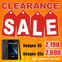 Doogee Clearance Sale จัดโปรโมชั่นส่งท้ายปี ด้วยสมาร์ทโฟนราคาพิเศษหลายรุ่น อาทิ Doogee X5 ราคา 2,190 บาท, Doogee X5s ราคาเพียง 2,690 บาท และ Doogee X6 ราคาพิเศษ 2,390 บาท โดยสินค้ามีจำนวนจำกัดเพียง 20 เครื่อง/รุ่นเท่านั้น