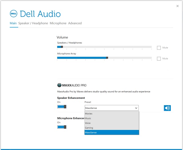 บนตัวเครื่องมาพร้อมกับลำโพงสเตอริโอที่รองรับระบบเสียง MaxxAudio Pro ช่วยให้รายละเอียดเสียงมีความคมชัดและสมจริงยิ่งขึ้นในขณะรับชมภาพยนตร์หรือฟังเพลง และนอกจากนี้ยังสามารถเลือกโหมดเสียงได้ถึง 5 โหมด เช่น Movies, Music, Voice, Gaming และ MaxxSense