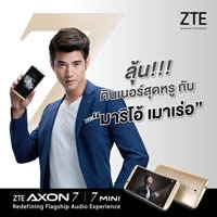 ทาง ZTE Thailand จึงได้จัดแคมเปญพิเศษเพื่อตอบแทนลูกค้า สำหรับเหล่าบรรดาลูกค้าสาวก AXON Series ทุกท่านที่ซื้อ AXON 7 หรือ AXON 7 mini มีสิทธิ์ลุ้นดินเนอร์สุดหรูแบบเอ็กซ์คลูซีฟ กับมาริโอ้ เมาเร่อ แบรนด์แอมบาสเดอร์คนแรกของ ZTE ในประเทศไทย หมดเขตการร่วมสนุก 15 พฤศจิกายน 2559 โอกาสดีๆแบบนี้ไม่ควรพลาด โดยติดตามความเคลื่อนไหว และกิจกรรมสนุกๆ ผ่านเวบไซต์ www.zte.co.th และเฟซบุ๊ค www.facebook.com/ztedevicethailand