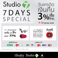 Studio 7 ร่วมฉลองครั้งยิ่งใหญ่เปลี่ยนชื่อร้านใหม่จาก iStudio by comseven เป็น Studio 7 มอบโปรโมชั่นสุดพิเศษให้ลูกค้ามากมากมายกับ 7 Days Special เพื่อตอบแทนความไว้วางใจที่คุณลูกค้ามีให้ตลอดมา
