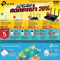 TP-Link ผู้นำด้านนวัตกรรมอุปกรณ์เน็ตเวิร์คสำหรับบ้าน และธุรกิจขนาดเล็ก/กลาง เปิดเผยว่า บริษัทนำผลิตภัณฑ์ไปลดกระหน่ำ 20% ในงาน COMMART WORK 2016 ระหว่างวันที่ 3-6 พฤศจิกายน 2559 ซึ่งสินค้าที่นำมาจัดโปรโมชั่น มีมากมาย ได้แก่ อุปกรณ์กระจายสัญญาณ Wi-Fi LTE-Advanced Mobile Wi-Fi M7350 ในราคา 3,250 บาท จำนวน 5 ชิ้น/วัน/บูธ