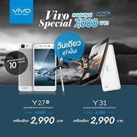 โดยรุ่นที่นำมาลดราคาได้แก่ vivo Y27, Y31, Y37, Y51, V3 และ V3 Max ส่วนรุ่นที่ไม่ลดราคาแต่สามารถซื้อเพื่อรับของแถม อาทิรุ่น Y55 ส่วนของแถม 10 รายการแต่ละรุ่นจะแจกไม่เหมือนกัน อ่านรายละเอียดเพิ่มเติมได้ที่ : lazada.co.th