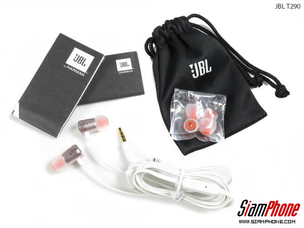 JBL T290 ออกแบบดีไซน์มาให้มีรูปทรงที่ทันสมัย ด้วยวัสดุอลูมิเนียม มีขนาดเล็กกะทัดรัด น้ำหนักเบา สวมใส่สบาย พกพาสะดวก ใช้ Driver 8.7 mm ที่ขับเสียงเบสออกมาได้อย่างหนักแน่นผนวกกับเทคโนโลยี JBL Pure Bass พร้อมปุ่ม Single Button Remote ที่สามารถควบคุมการเล่นเพลงและการรับสาย มีรูไมโครโฟนให้ในตัวที่ช่วยให้ใช้งานได้อย่างสะดวกมากขึ้น วางจำหน่ายในราคา 1,490 บาท