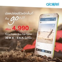 Alcatel Go Play ราคาวางจำหน่าย 4,990 บาท เบื้องต้นสามารถไปจับจองเป็นเจ้าของได้ภายในงาน Power Buy Fair ณ ไบเทค บางนา วันที่ 30 พ.ย. - 6 ธ.ค.