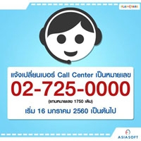 บริษัท เอเชียซอฟท์ คอร์ปอเรชั่น จำกัด (มหาชน) ผู้นำการให้บริการเกมออนไลน์ในประเทศไทยและภูมิภาคเอเชียตะวันออกเฉียงใต้ ขอแจ้งการเปลี่ยนหมายเลขของฝ่ายบริการลูกค้าสัมพันธ์ (Call Center) เป็นหมายเลข 02-725-0000 (แทนหมายเลข 1750 เดิม)โดยมีกำหนดเริ่มใช้ ตั้งแต่วันที่ 16 มกราคม พ.ศ.2560 เป็นต้นไป