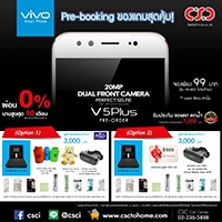 CSC ให้คุณได้เป็นเจ้าของ Vivo V5 Plus สมาร์ทโฟนระดับท็อปที่มาพร้อมกล้องหน้าคู่ความละเอียด 20 ล้านพิกเซลให้การเซลฟี่ของคุณอย่างคมชัด ที่จะเปิดให้จองเป็นเจ้าของก่อนใครเพียง 99 บาท พร้อมรับของสมนาคุณสุดคุ้มมูลค่ากว่า 3,000 บาท ให้คุณได้เลือกถึง 2 Set ได้แก่