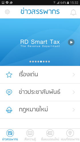 เป็นอีกหนึ่งบริการของภาครัฐช่วยอำนวยความสะดวกสำหรับผู้เสียภาษีได้มากเลยทีเดียว ด้วยการมีแอพฯ "RD Smart Tax" มาให้บริการพัฒนาโดยกรมสรรพากรซึ่งตัวแอพฯ ได้รวบรวมทุกเรื่องราวของภาษีอัพเดทข้อมูลตลอดไว้ในที่เดียวทำให้ไม่ต้องโทรไปหา Call Center หรือติดตามจากแหล่งข่าวอื่นเกิดความยุ่งยากและบางครั้งก็ไม่ใช่ข้อมูลถูกต้อง นอกจากนี้ยังสามารถยื่นแบบออนไลน์และตรวจสอบผลคืนภาษี ดังนั้นแอพพลิเคชั่นดังกล่าวข้างต้นจึงแนะนำผู้เสียภาษีทุกคนต้องดาวน์โหลดเก็บไว้ในสมาร์ทโฟน เพราะสามารถบริการจัดการหรือศึกษาข้อมูลได้ง่ายๆ ผ่านปลายนิ้วเท่านั้น!