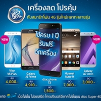 นอกจากนี้ยังมีสมาร์ทโฟน 4G รุ่นอื่นๆ ที่น่าสนใจ นำมาจัดราคาพิเศษให้ได้เลือกซื้อกัน พร้อมแพ็กเกจที่โดนใจอีกมากมาย ให้คุณได้สัมผัสประสบการณ์ลื่นนนน.. ไปพร้อมกันแบบไม่อั้น หมดความกังวลกับปัญหาการใช้งานอินเทอร์เน็ต และพิเศษ! รับส่วนลดเพิ่ม 1,500 บาทสำหรับลูกค้าย้ายค่ายเบอร์เดิม สนใจติดต่อศูนย์บริการดีแทคทุกสาขา หรือดูติดตามรายละเอียดเพิ่มเติมได้ที่ http://www.dtac.co.th/camp/device/best-deal.html