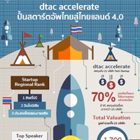 นายสมโภชน์ จันทร์สมบูรณ์ ผู้อำนวยการฝ่าย ดีแทค แอคเซอเลอเรท บริษัท โทเทิ่ล แอ็คเซ็ส คอมมูนิเคชั่น จำกัด (มหาชน) หรือดีแทค เปิดเผยว่า “ดีแทค แอคเซอเลอเรท เริ่มต้นโครงการบ่มเพาะสตาร์ตอัพไทย เมื่อ 5 ปีที่แล้ว ตั้งแต่ปี 2555 ตลอดระยะเวลาที่ผ่านมา ดีแทค แอคเซอเลอเรทได้พัฒนาขึ้นมาจนมีหลักสูตร และกูรูที่มาให้ความรู้ เทียบเท่าโครงการบ่มเพาะสตาร์ตอัพระดับโลก รวมทั้งความสามารถและไอเดียของสตาร์ตอัพไทยก็มีความสามารถมากขึ้นไม่น้อยหน้าต่างชาติ เรามีตัวเลขที่น่าสนใจ จากครอบครัว ดีแทค แอคเซอเลอเรท โครงการบ่มเพาะสตาร์ทอัพมือ 1 ของไทย มาแชร์กันในแง่มุมเม็ดเงินลงทุน หลักสูตร มูลค่าของสตาร์ตอัพในโครงการ เราหวังว่า ประเทศไทยจะมีสตาร์ตอัพดาวรุ่งมาประดับวงการอีกไม่น้อย จากการร่วมมือร่วมใจของภาครัฐและเอกชนที่จะมุ่งส่งเสริมให้สตาร์ตอัพไทย เป็นอีกหนึ่งกำลังสำคัญที่ช่วยสร้างสรรค์ให้ประเทศไทย ก้าวไปสู่ไทยแลนด์ 4.0 ได้อย่างรวดเร็ว”